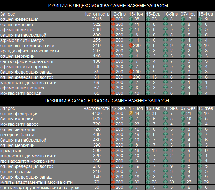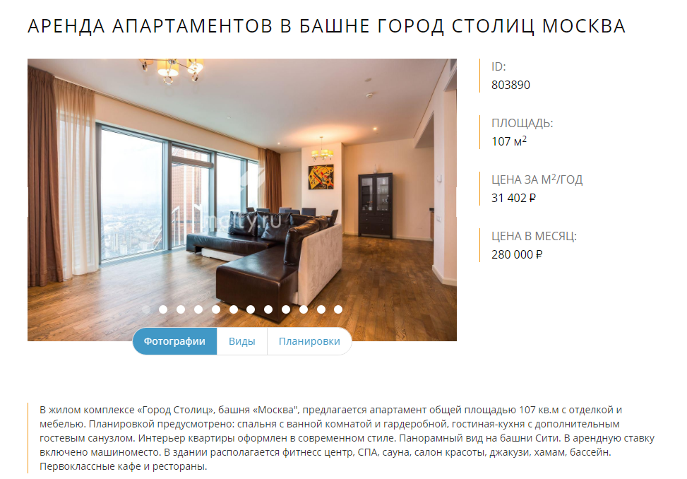 Новый сайт элитной московской недвижимости в районе Москва-Сити. Специализация узкая: аренда и продажа квартир, офисов, парковочных мест, навигационные запросы по башням. Элитный сегмент — своя аудитория и своя специфика выдачи.