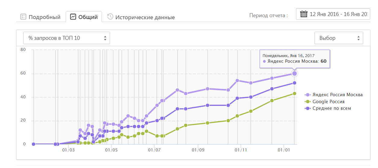 - 60% целевых запросов в ТОП-10 Яндекс Москва.